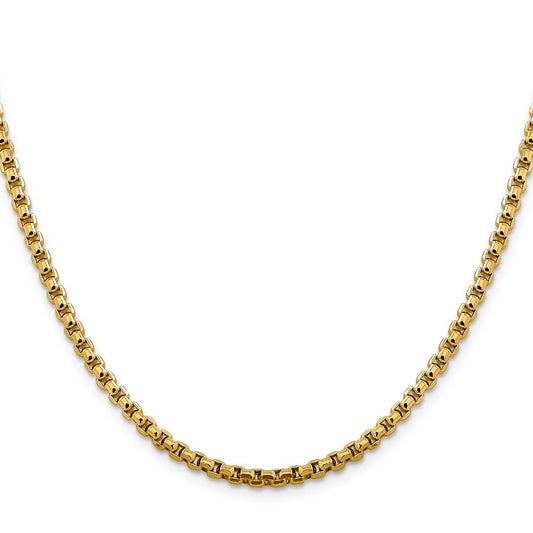 14K 22 inch 3.6mm Semi-Solid Round Box with Lobster Clasp Chain