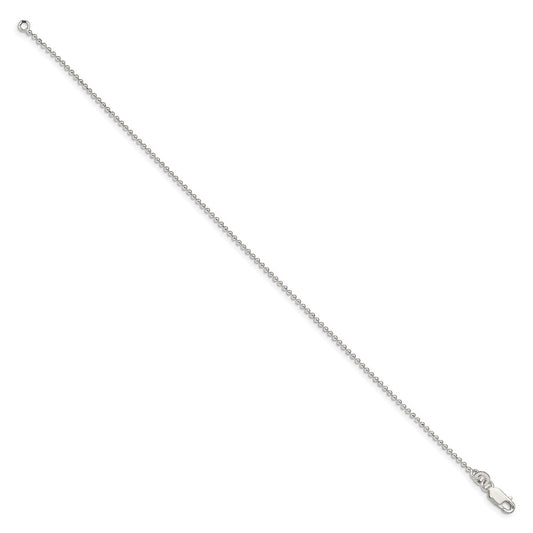 Sterling Silver 1.5mm Beaded Chain Anklet