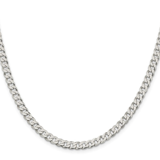 Sterling Silver Rhodium-plated 6mm Beveled Curb Chain
