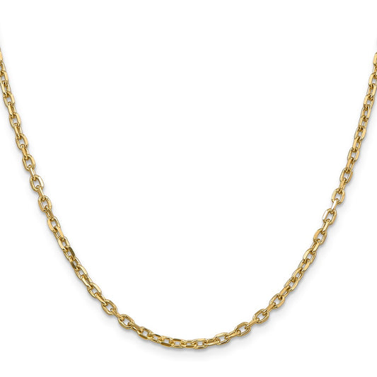 14K 22 inch 2.2mm Diamond-cut Round Open Link Cable with Lobster Clasp Chain