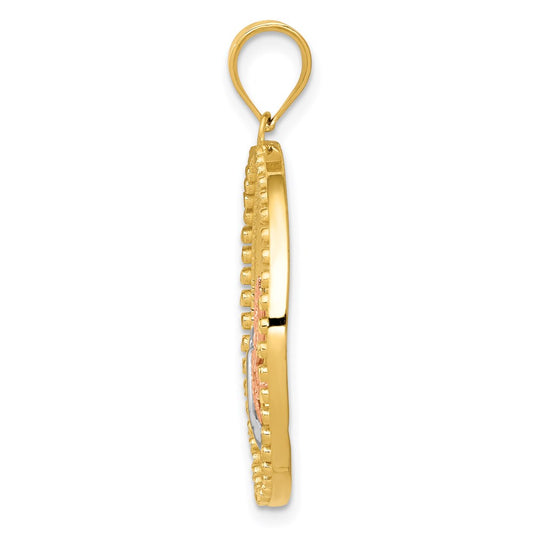 14K Two-tone w/White Rhodium Heart w/Cross and Flowers Charm