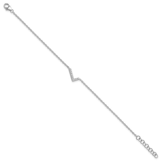 14KW Diamond Sideways Letter V w/ 1in ext. Bracelet
