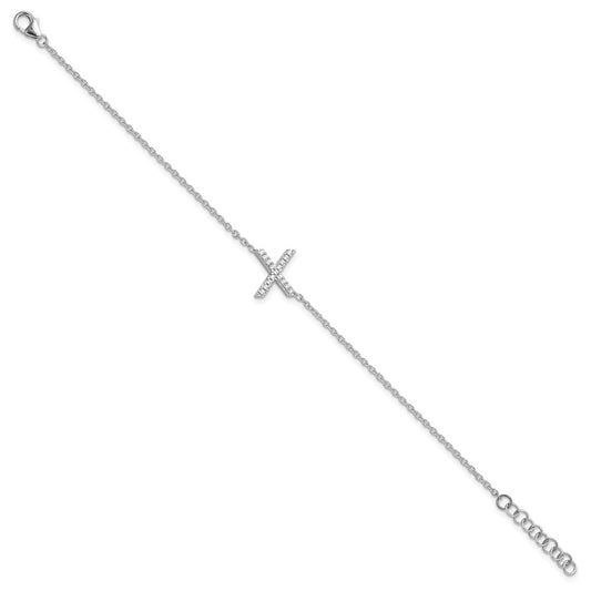 14KW Diamond Sideways Letter X w/ 1in ext. Bracelet