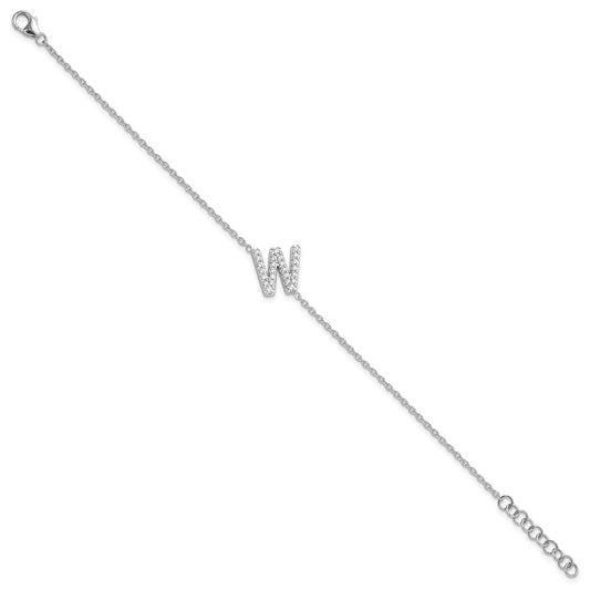 14KW Diamond Sideways Letter W w/ 1in ext. Bracelet
