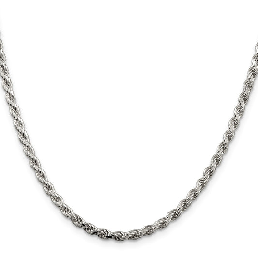 Sterling Silver Rhodium-plated 3.5mm Diamond-cut Rope Chain