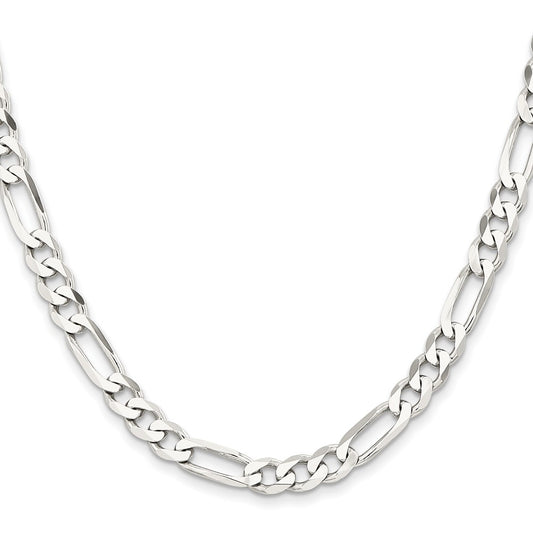 Sterling Silver Rhodium-plated 7.5mm Lightweight Flat Figaro Chain