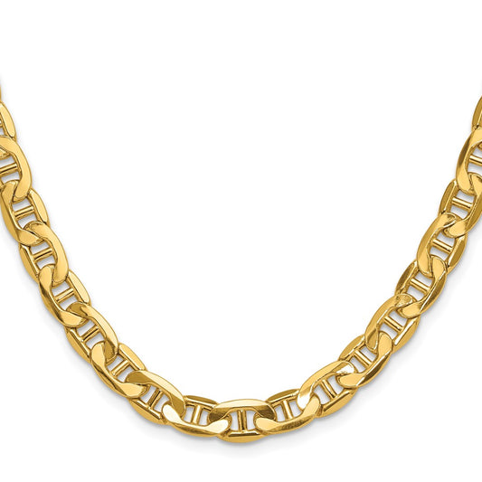 14K 7 inch 7mm Concave Anchor with Lobster Clasp Bracelet