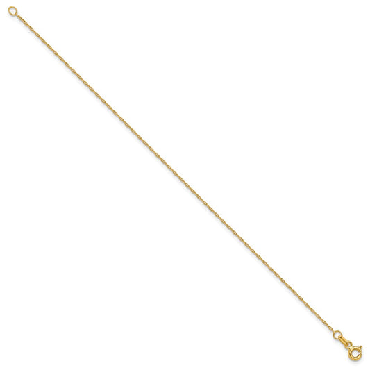 14K 10 inch .8mm Diamond-cut Cable with Spring Ring Clasp Anklet