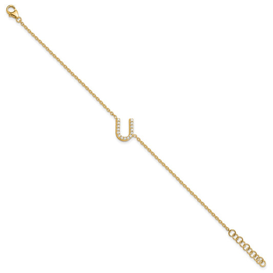 14K Diamond Sideways Letter U w/ 1in ext. Bracelet