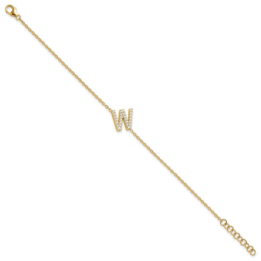 14K Diamond Sideways Letter W w/ 1in ext. Bracelet