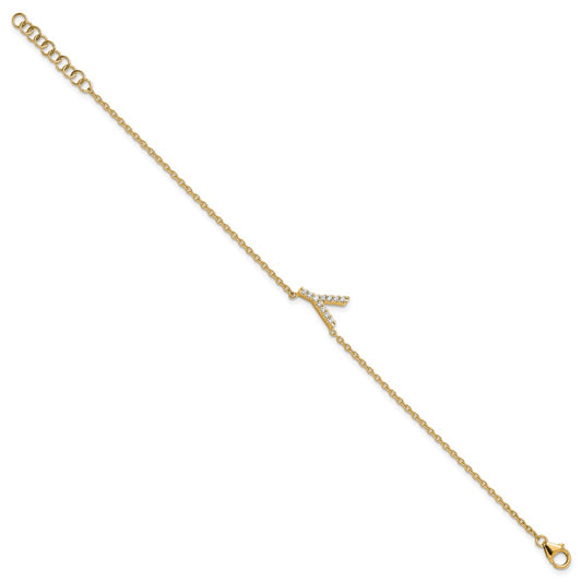 14K Diamond Sideways Letter Y w/ 1in ext. Bracelet