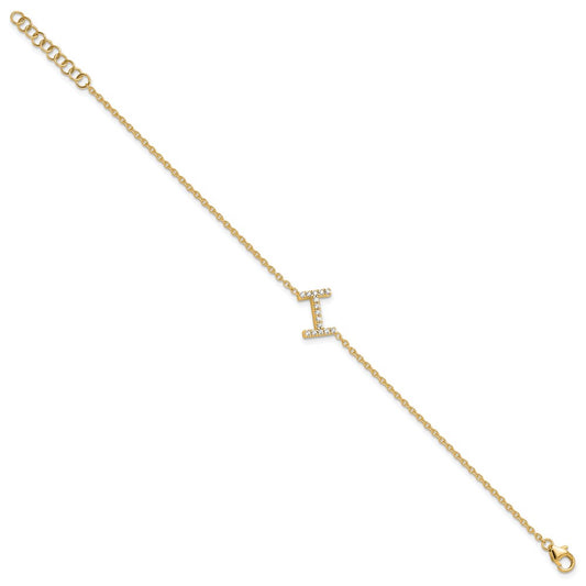14K Diamond Sideways Letter I w/ 1in ext. Bracelet