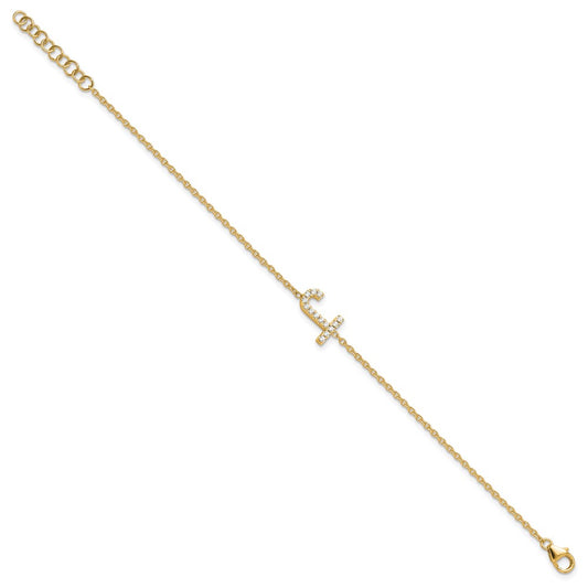 14K Diamond Sideways Letter T w/ 1in ext. Bracelet