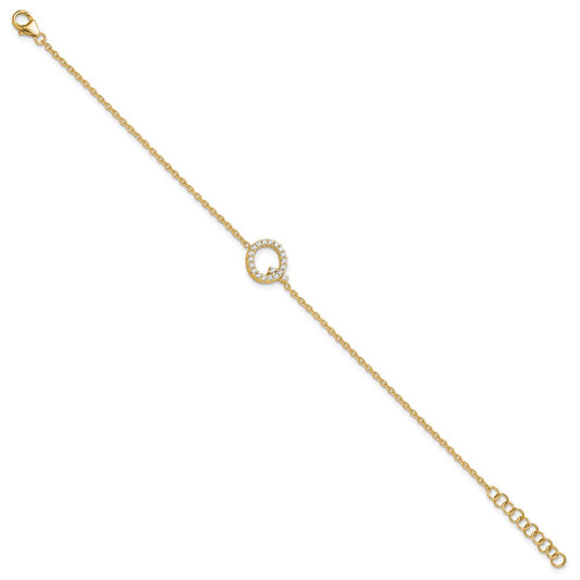 14K Diamond Sideways Letter Q w/ 1in ext. Bracelet