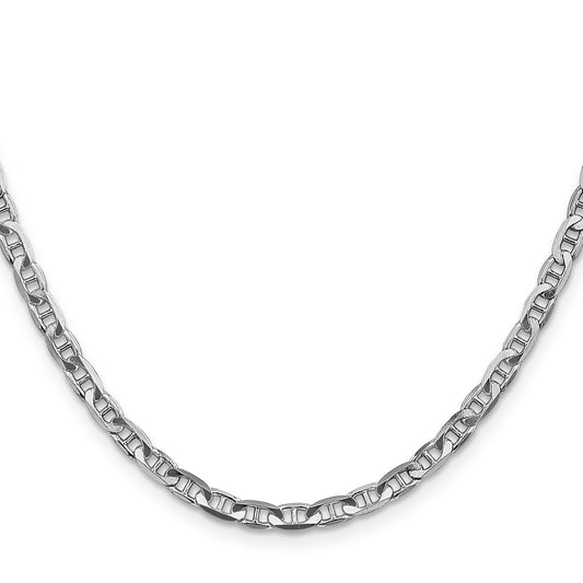 14K White Gold 24 inch 3mm Concave Anchor with Lobster Clasp Chain