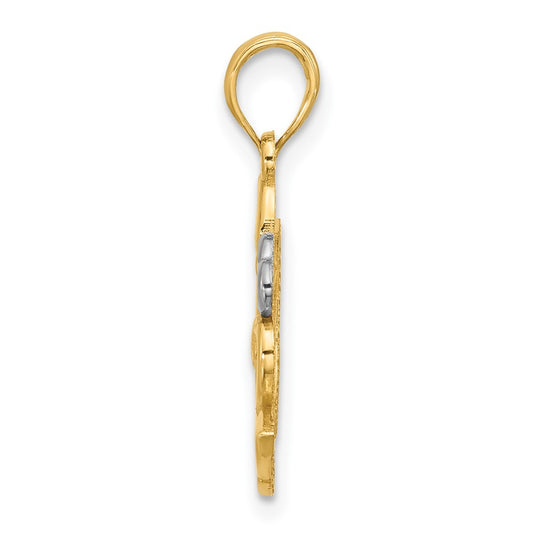 14K with White Rhodium Diamond Cut Turtle Pendant