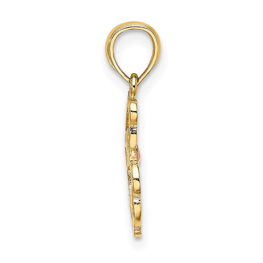 14k Two-tone Diamond-cut Rose Plumeria Turtle Pendant