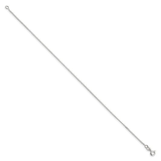 Sterling Silver 1mm Open Elongated Link Curb Chain Anklet