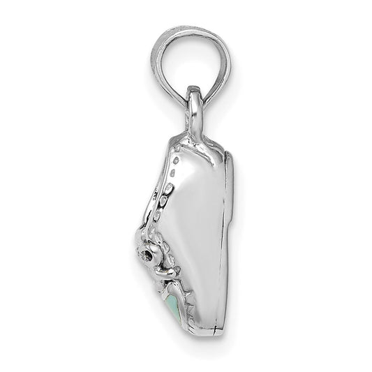 14K w/ White Rhodium 3-D Light Blue Enamel Baby Shoe Charm