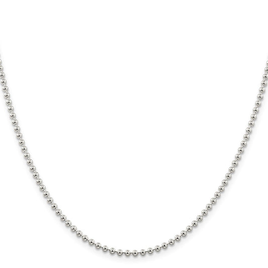 Sterling Silver 2.35mm Beaded Chain w/2in ext.