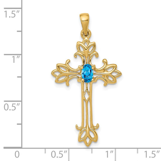 14k 5x3mm Oval Cubic Zirconia cross pendant