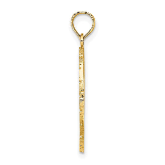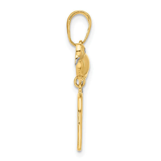 14K Two-tone w/White Rhodium Satin Diamond-cut Hummingbird Slide