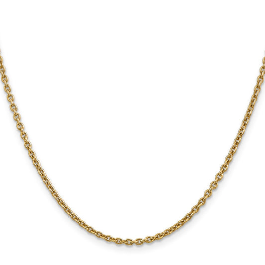 14K 22 inch 2.2mm Diamond-cut Round Open Link Cable with Lobster Clasp Chain