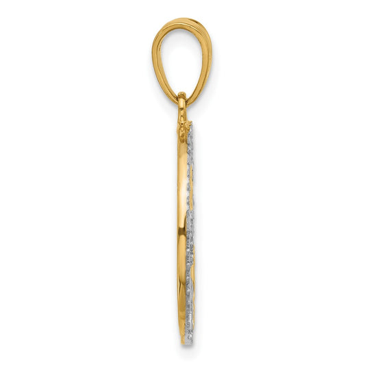 14k and Rhodium Diamond-cut Polished Starfish Pendant