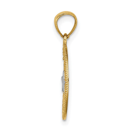 14k Two-tone w/White Rhodium Star w/Flowers Charm