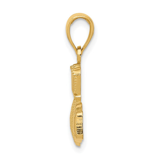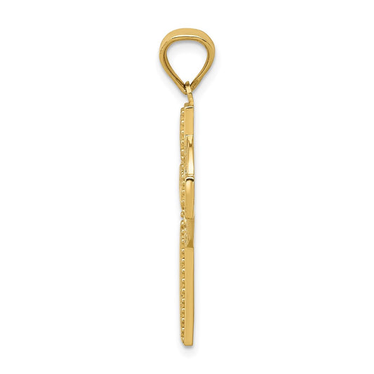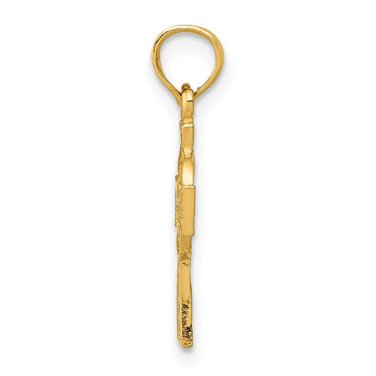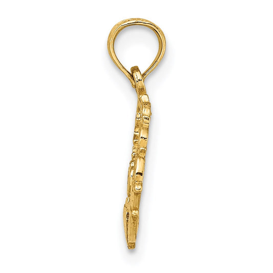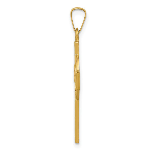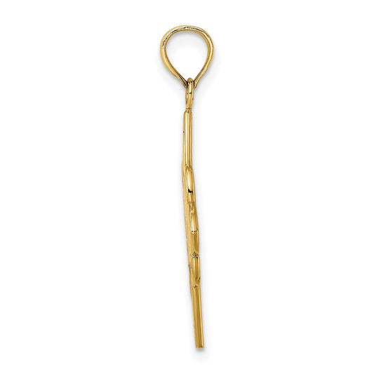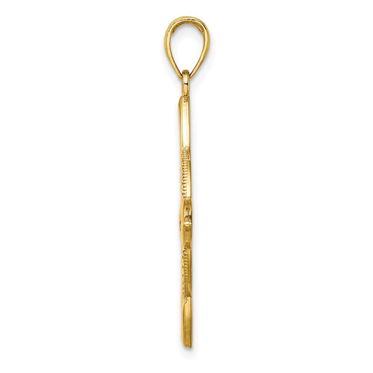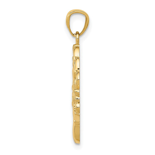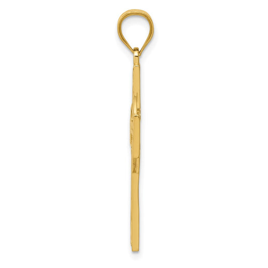 14k Satin Diamond-cut Flat-Backed Claddagh Pendant