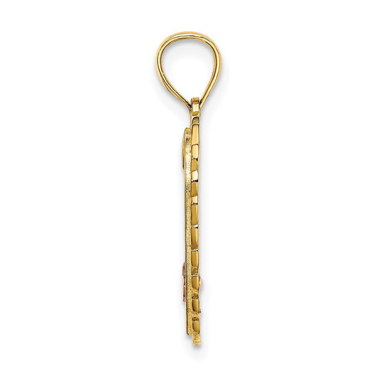 14K Textured Cut-Out Crucifix W/Budded Tips Charm
