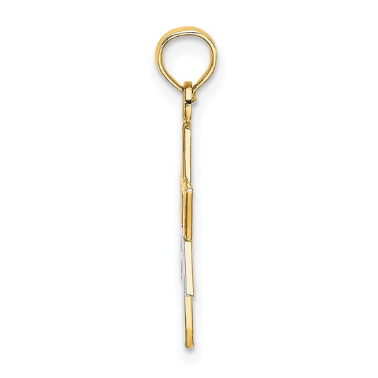 14K W/ Rhodium D/C and Cut-Out Cross Charm