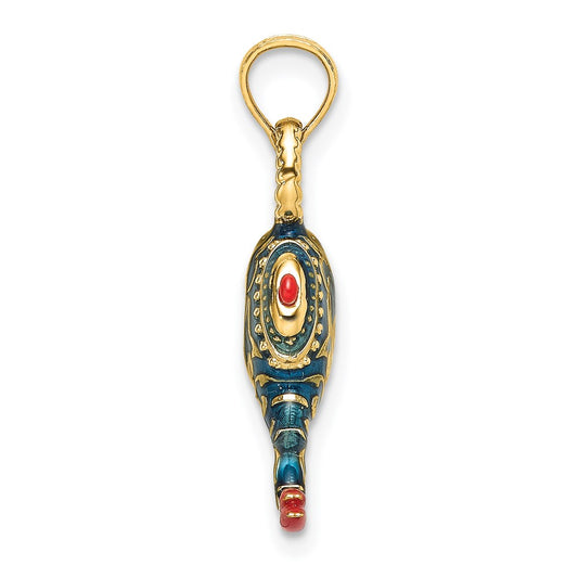 14K w/ Enamel 3-D Textured Blue Genie Lamp Charm