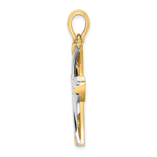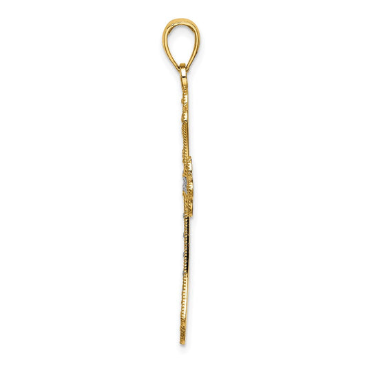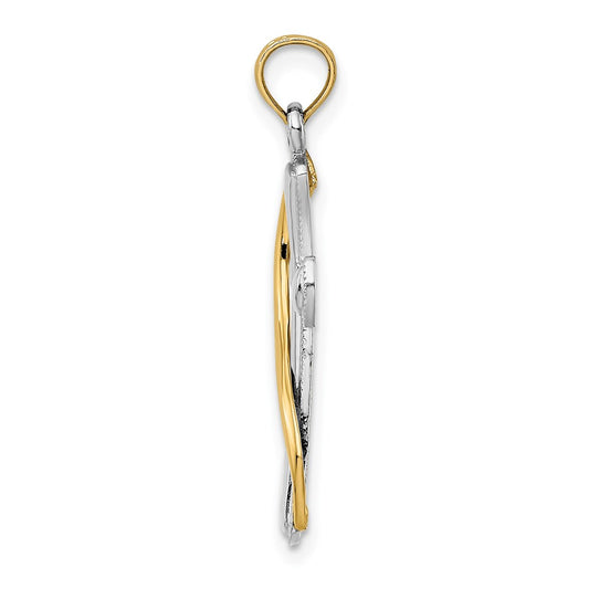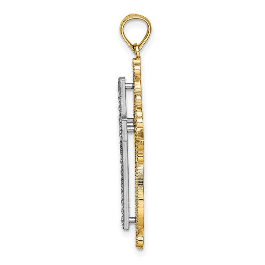 14K w/Rhodium Diamond-Cut Twisted Cross Charm