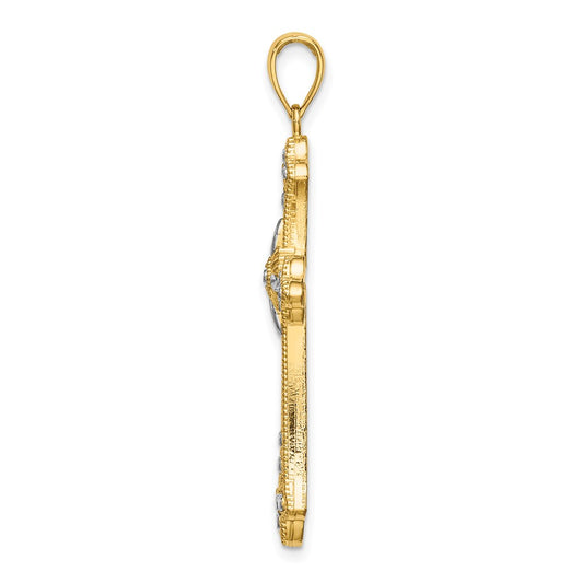 14K W/ Rhodium and D/C Flower Design Cross Charm