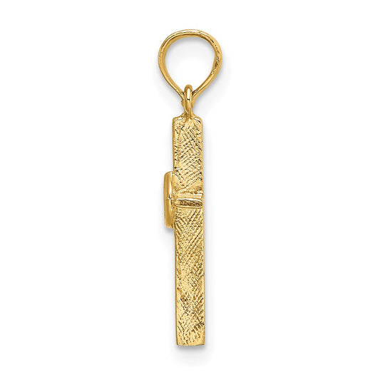 14l Two-Tone Textured Finish Cross w/ Drape Charm