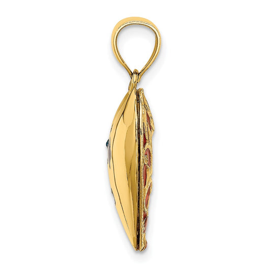 14K Reversible Red and Blue Enameled Cross In Heart Charm