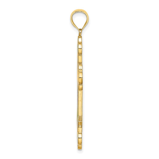 14K Two-Tone Cut-Out Dove On Cross Charm