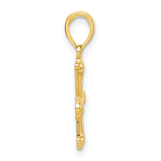 14K Polished and Textured Crucifix Charm
