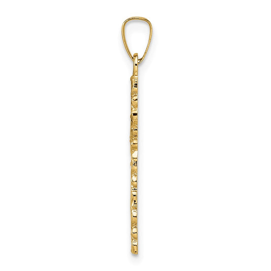 14k Polished and Textured Hollow Latin Cross Pendant