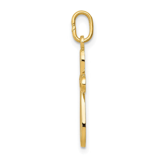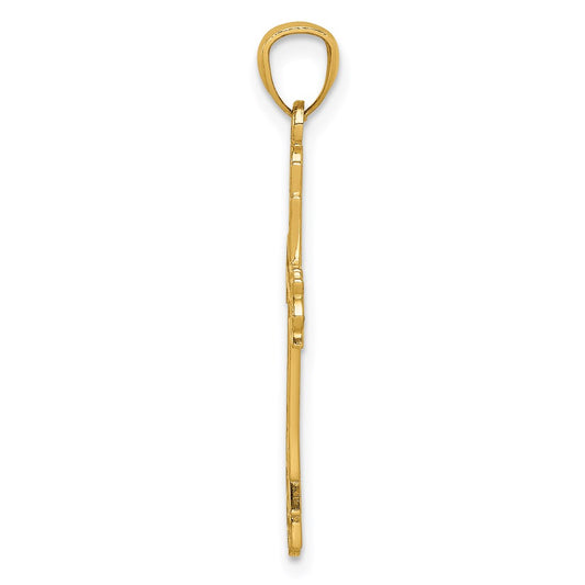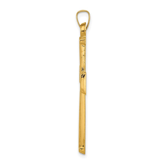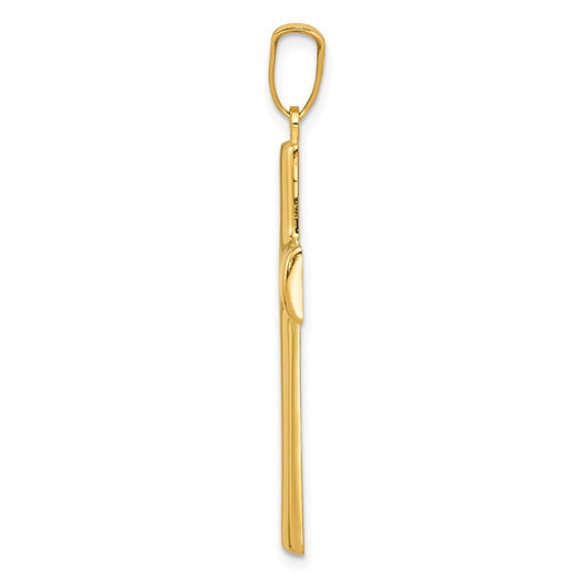 14K Gold Polished Beveled Stick Cross W/Frame Pendant