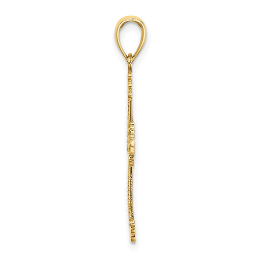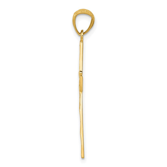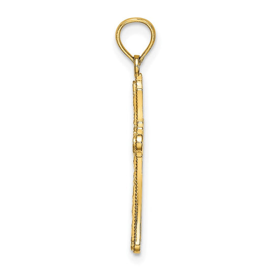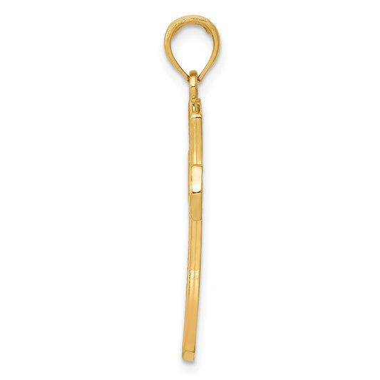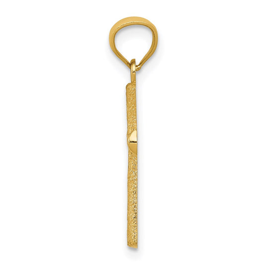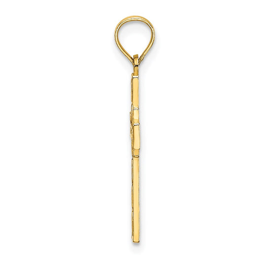 14K Engraved Center and Polished Beveled Edge Cross Charm