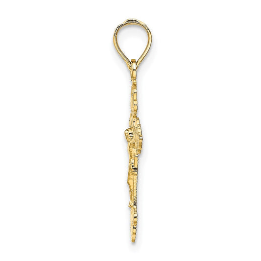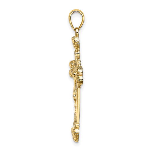 14K Diamond-cut Fancy Tipped Crucifix Pendant