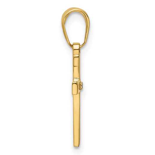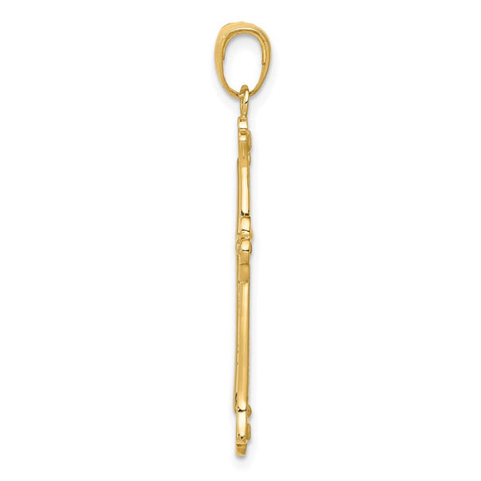 14K w/Rhodium Diamond-Cut Cross Pendant