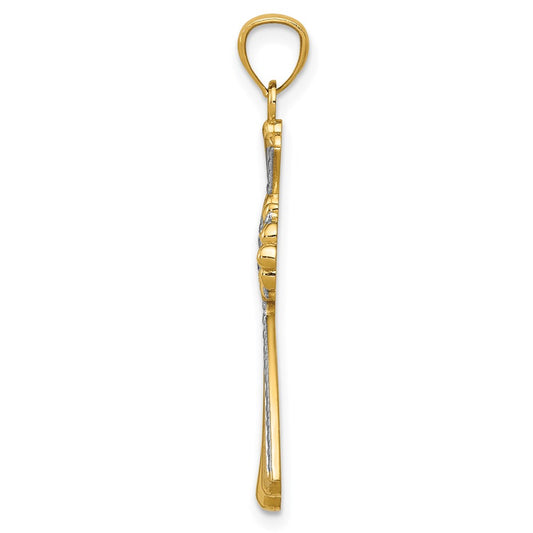14K Two-Tone Satin Polished D/C Crucifix W/Vines Pendant