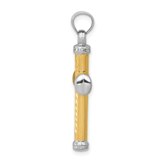 14k w/Rhodium 3-D Hollow Cross Pendant