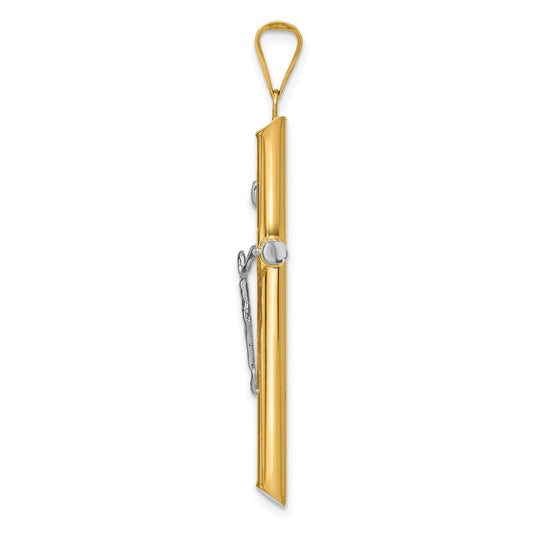14K Two-tone Small Narrow Cross w/Crucifix Pendant