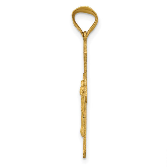 14k Two-Tone Textured and Polished INRI Crucifix Cross Pendant