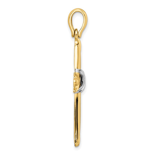 14K W/ Rhodium Cross Anchor Captain Wheel Pendant