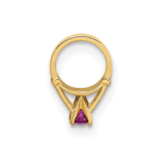 14K 3D Ring with Dark Pink CZ Charm